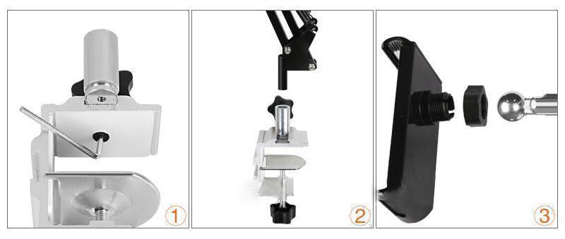 - 【Widely Used in Many Places】--- The base clamp will be compatible with any different thicknesses table/platform. It perfectly fits any places like bedroom,sofa,office,kitchen,gym,bathroom. It enables you to release your hands, which is very practical lazy mount holder.